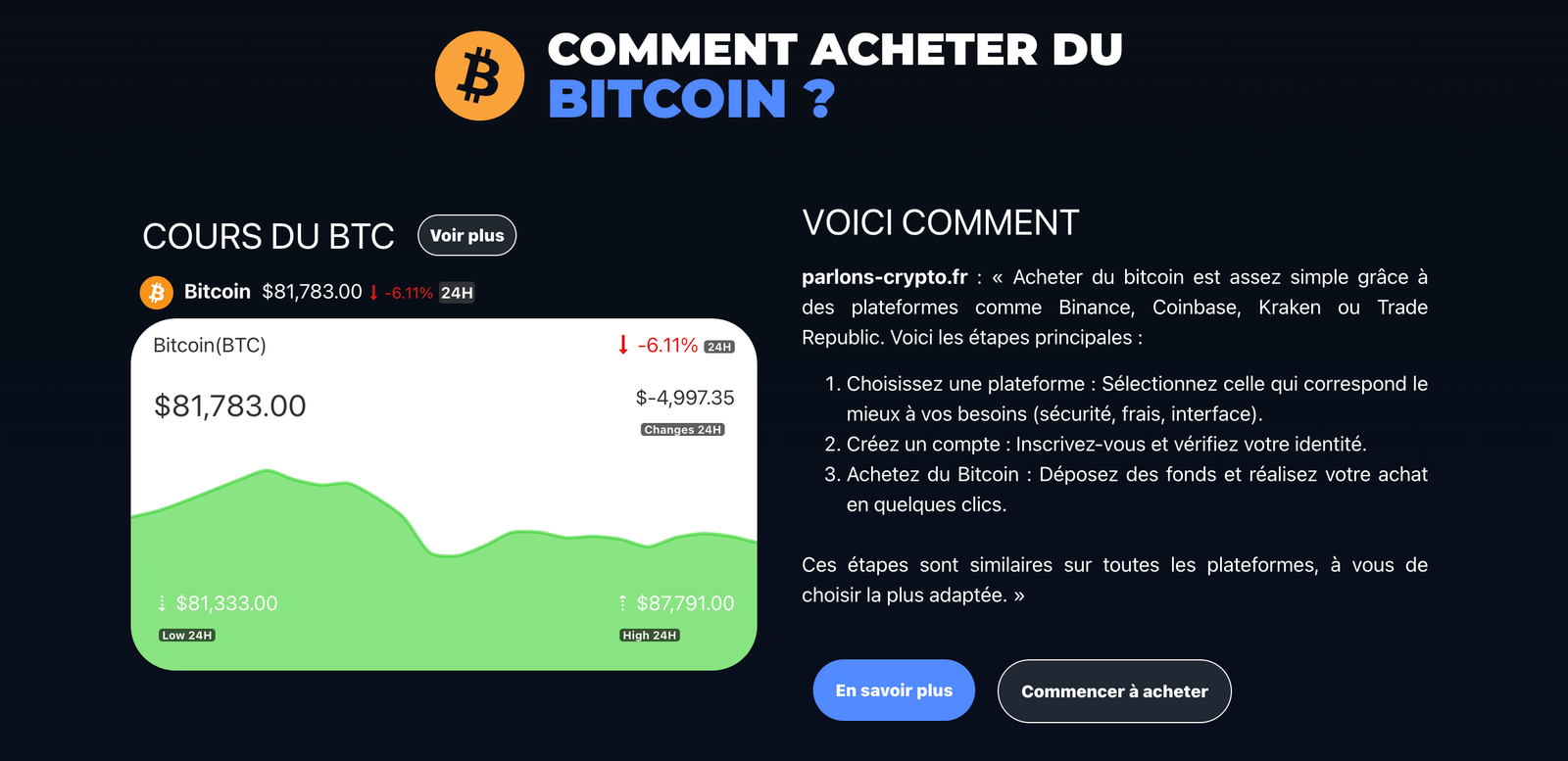 Créer un site WordPress destiné à expliquer comment acheter des cryptomonnaies, avec des tutoriels accessibles. Le but était aussi de générer du trafic SEO et de l’affiliation avec des plateformes comme Binance.